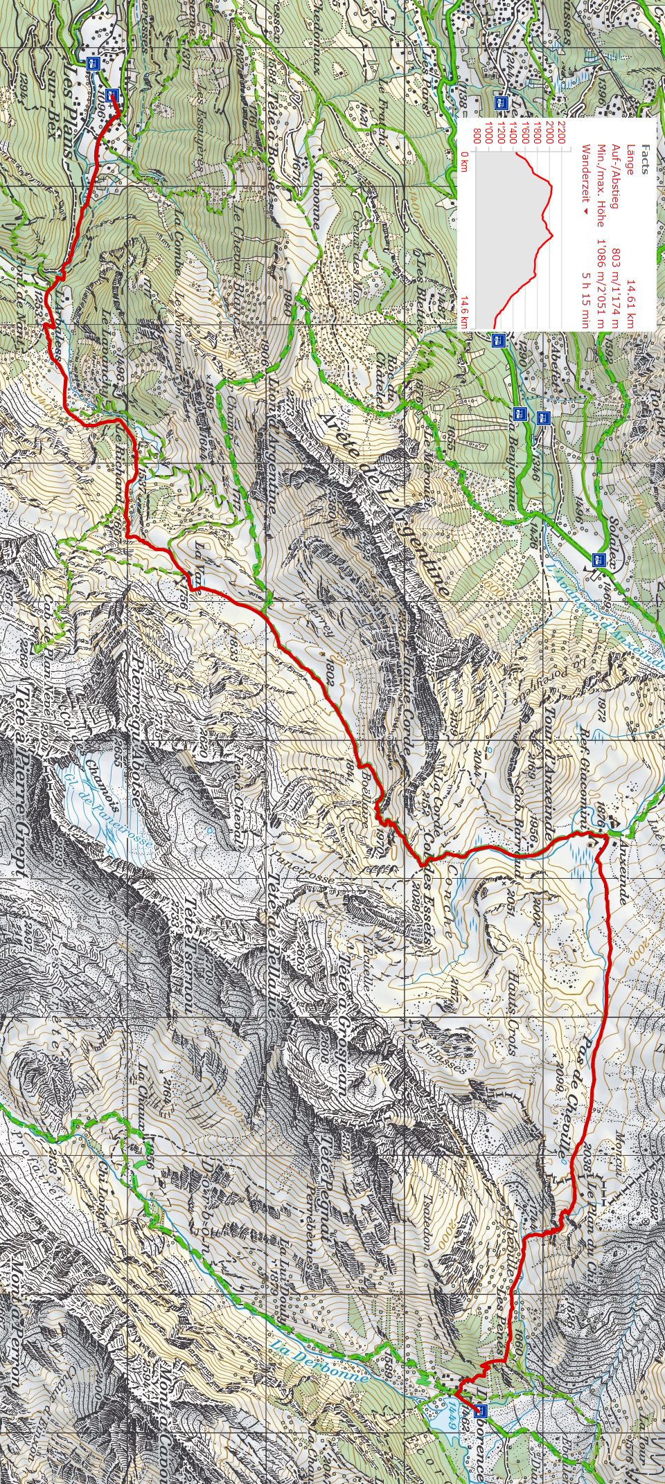 - Tour: Derborence - Le Grenier - Pas de Cheville - Anzeide - Col des Essets - La Vare - Le Richard - Pont de Nant - Les Plans-sur-Bex